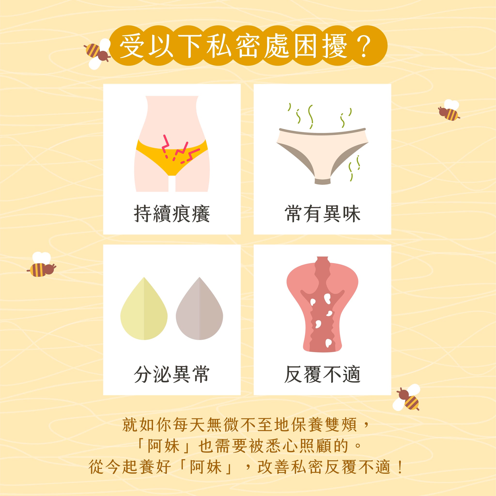 This is a natural intimate care essence with Black BeeOme™ Swiss black bee honey enzyme extract, which is to balance the microflora and promote beneficial bacteria growth. Proven to eliminate 99% of Candida albicans^. With a blend of over 10 plant-based ingredients that offers soothing and antioxidant effects, it helps restore intimate health by combating bacteria, alleviating itching, odor, and abnormal discharge. Enriched with glycerin and allantoin, this essence also relieves dryness. It is suitable for discomfort relief, ideal for use before and after menstruation, workout, intimacy, bathing or swimming.